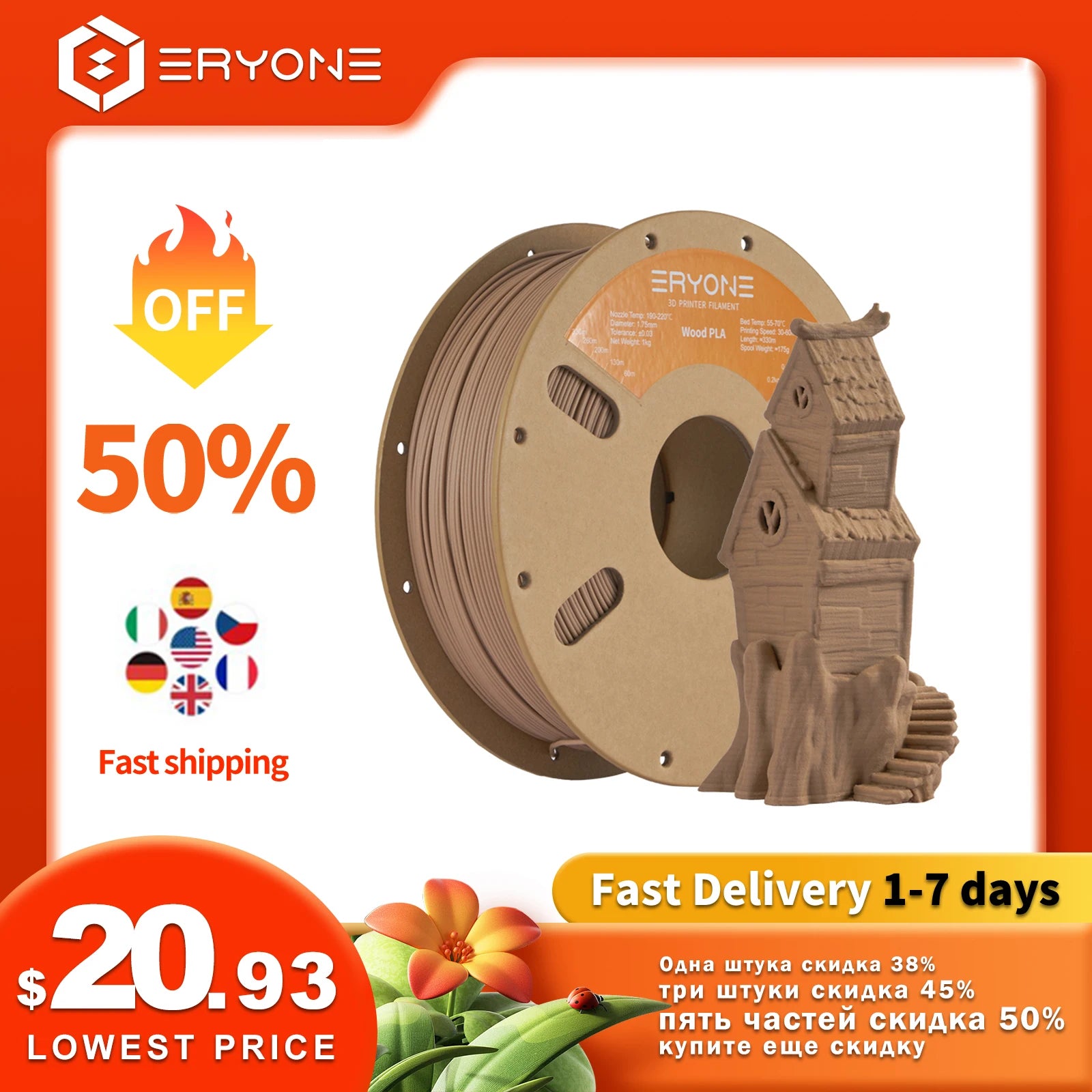 ERYONE Promotion Wood PLA Filament Light/Deep Color (1KG/2.2lbs) 1.75mm For FDM 3D Printer High Quality Free Fast Shipping